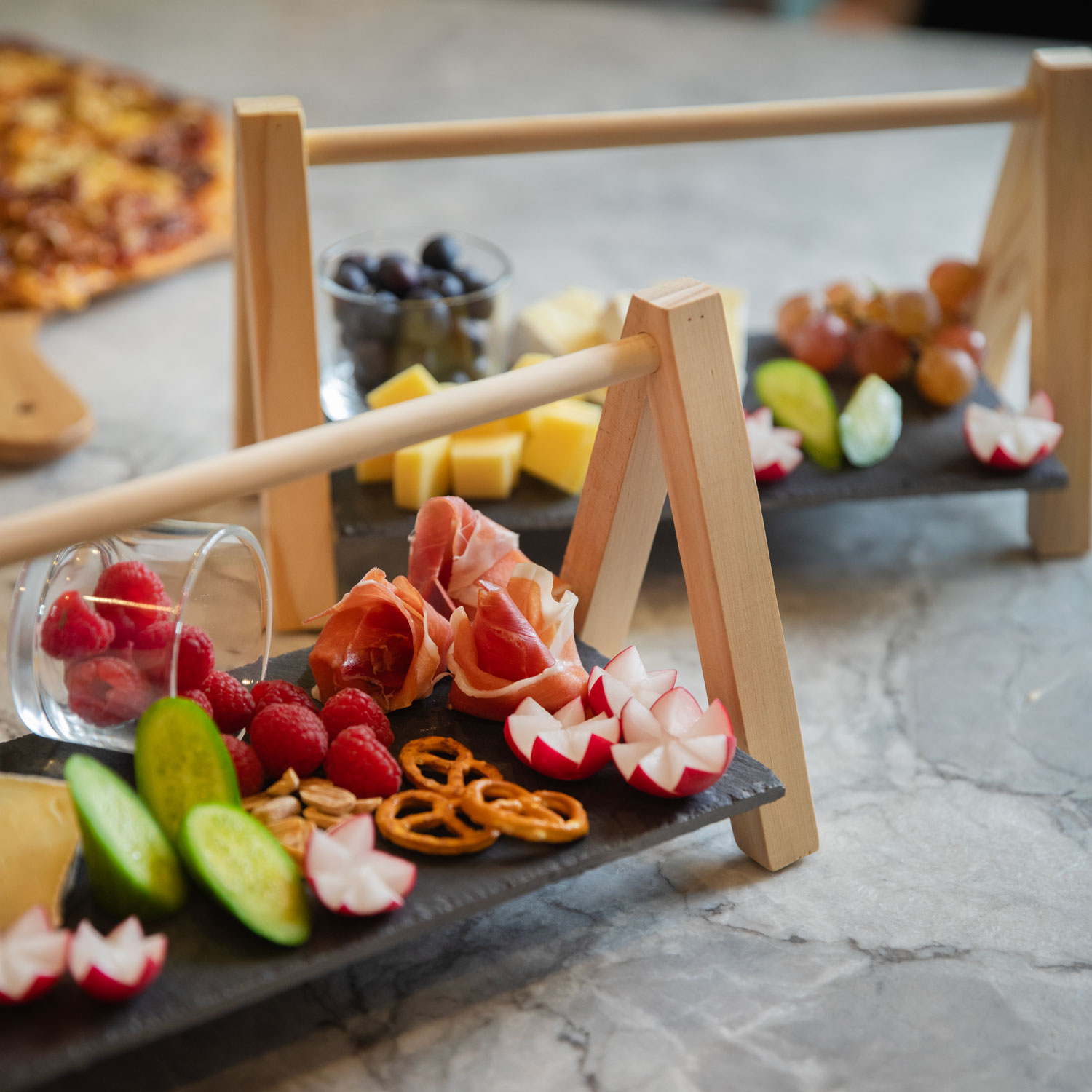 Etagere mit Schieferplatte / Servierbrett mit Holzgestell