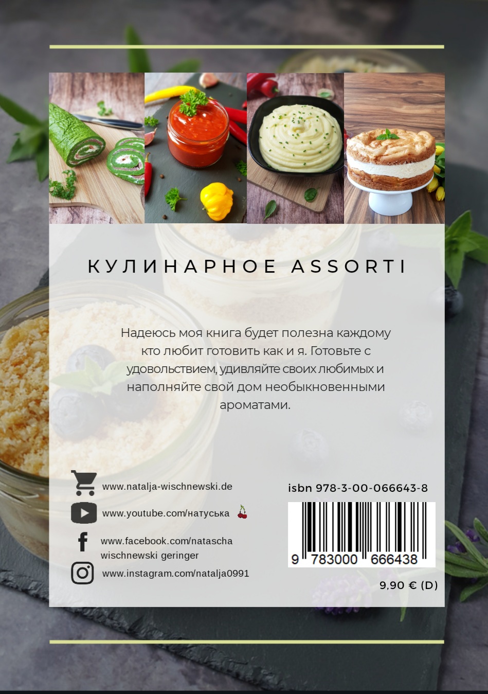 Меня зовут Наталья.Многие из вас знают меня как “Натуська🍒”.С тех пор как я приобрела Термомикс я стала много готовить и меня периодически посещяла мысль собрать все свои рецепты в одну книгу. И вот она моя первая книга. В ней я собрала для вас 24 своих любимых рецептов. Мне очень хочется чтоб каждый из вас кто держит ее нашёл для себя что то подходящее.
