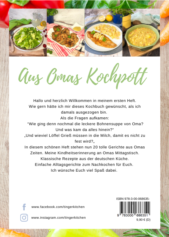 In diesem Buch zeigt dir Tina 20 tolle Rezepte aus Omas Zeiten. Ihre Kindheitserinnerungen am Omas Küchentisch. Klassische, einfache Gerichte der deutschen Küche - leicht zum Nachkochen.