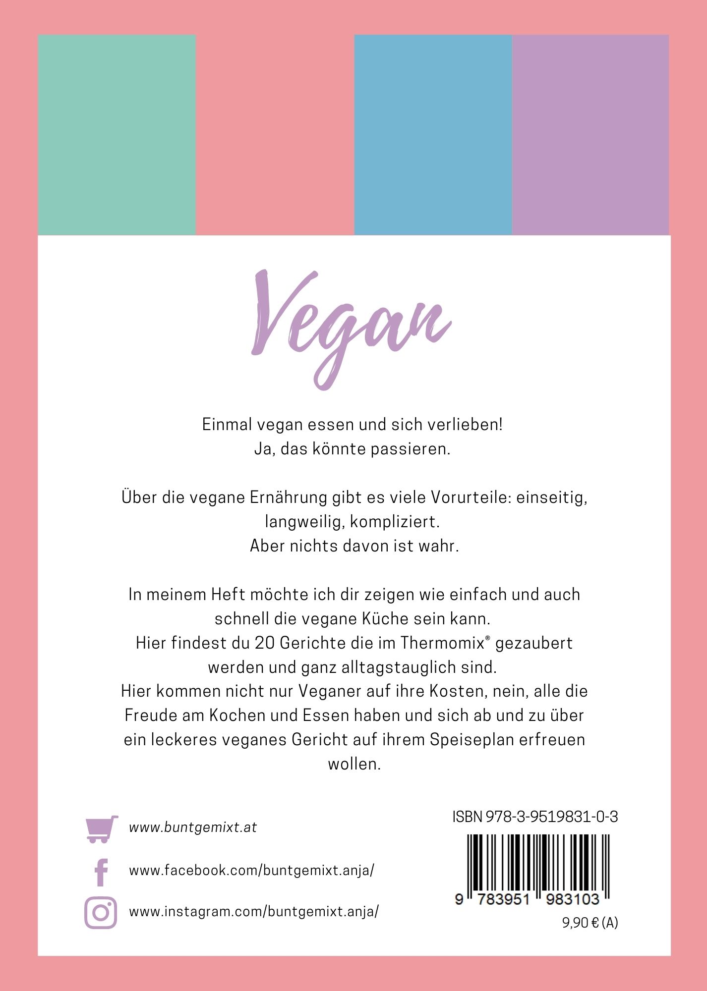 In dem Rezeptheft zeigt Anna, wie einfach und auch schnell die vegane Küche sein kann. Du findest 20 Gerichte, die im Thermomix® gezaubert werden und ganz alltagstauglich sind. Hier kommen nicht nur Veganer auf ihre Kosten. Alle, die Freude am Kochen und Essen haben, freuen sich auch mal über ein leckeres veganes Gericht.