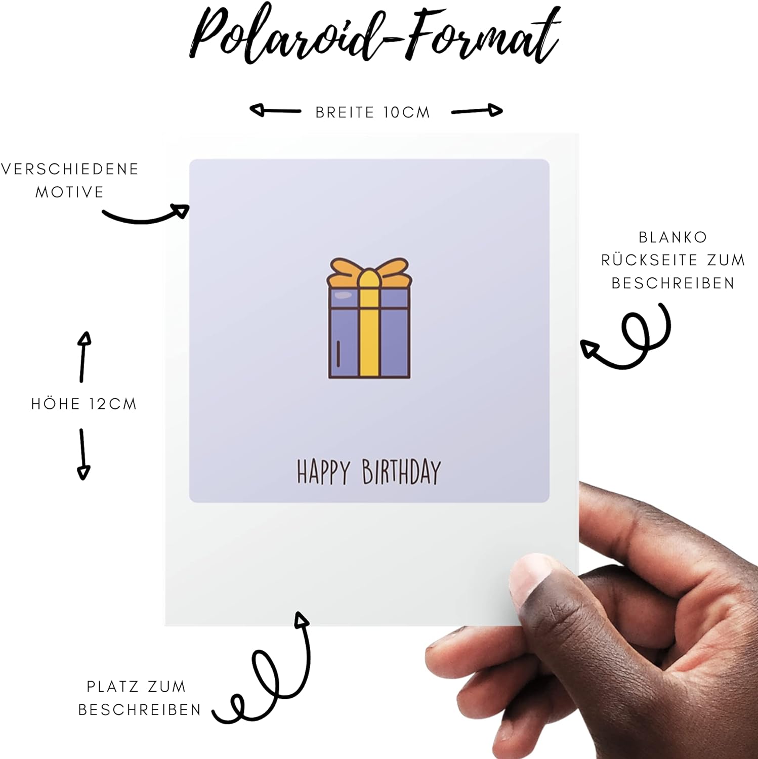 In diesem Set befinden sich 20x schöne Postkarten im Polaroid-Format, jeweils 2x je Motiv. Das Set enthält Motivkarten zum Thema: Geburtstag.