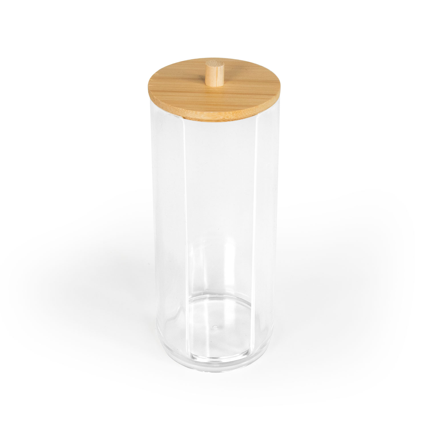Der Wattepads-Spender aus Kunststoff mit Bambusdeckel ist eine praktische und umweltfreundliche Lösung zur Aufbewahrung und Entnahme von Wattepads. Dieses Produkt vereint modernes Design mit nachhaltigen Materialien und Funktion. Der Spender bietet ausreichend Platz, um eine Vielzahl von Wattepads aufzubewahren. Der Spender schützt die Wattepads vor Staub und Feuchtigkeit, was die Hygiene gewährleistet und die Haltbarkeit der Wattepads erhöht. Der Spender ist einfach zu öffnen und zu schließen, sodass du die Wattepads leicht entnehmen und den Behälter wieder auffüllen kannst.