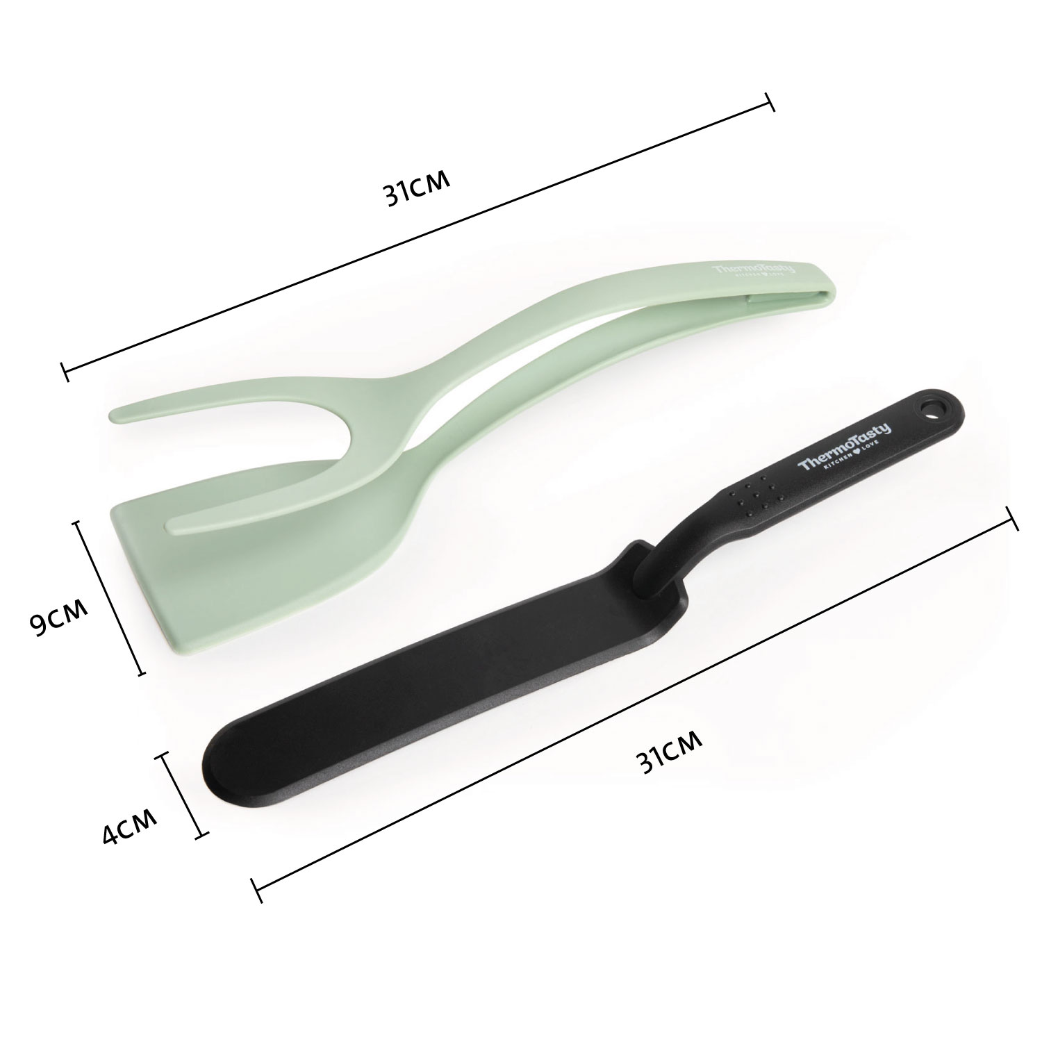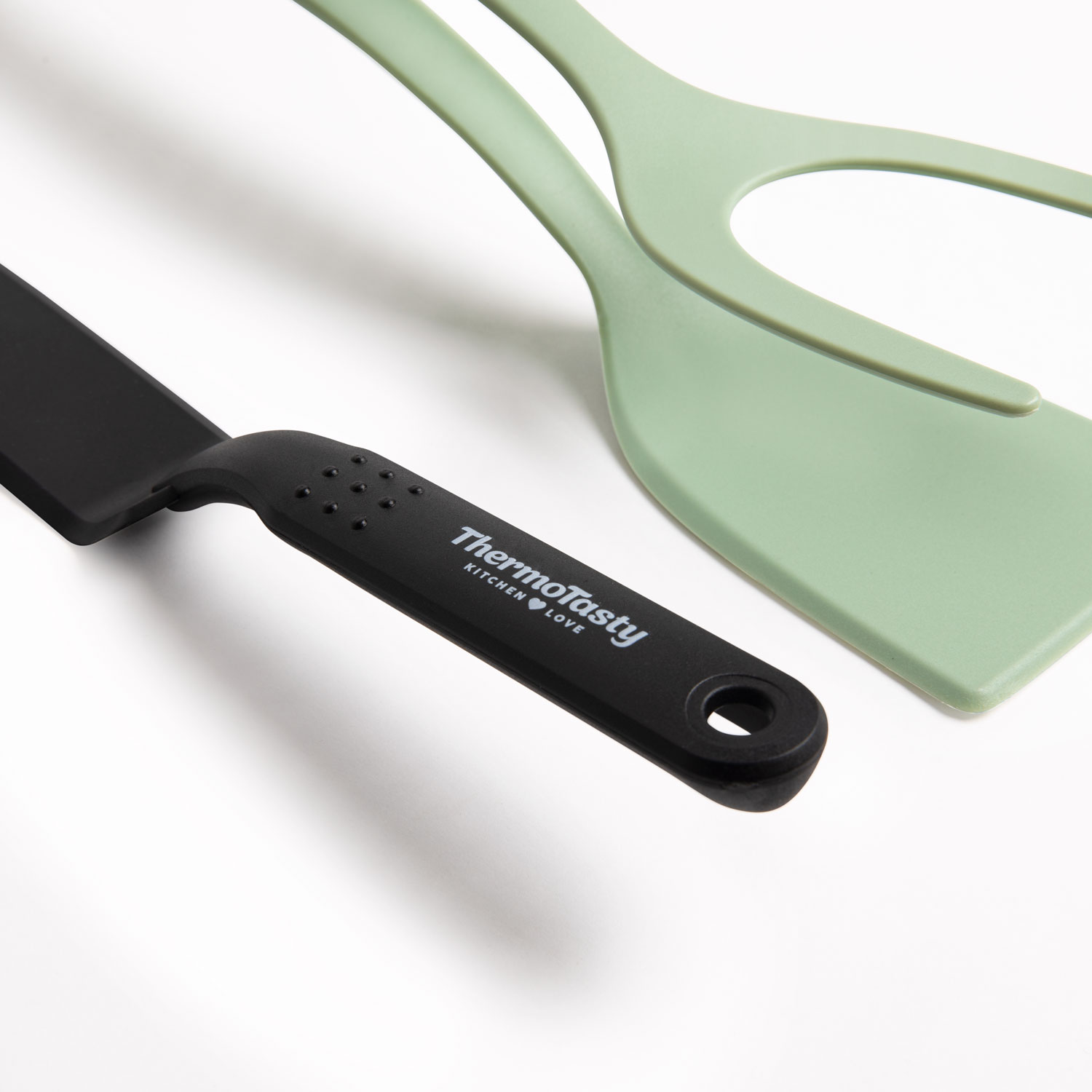 - Bestehend aus Küchenzange bzw. Spiegelei-Wender und Crêpes-Spatel