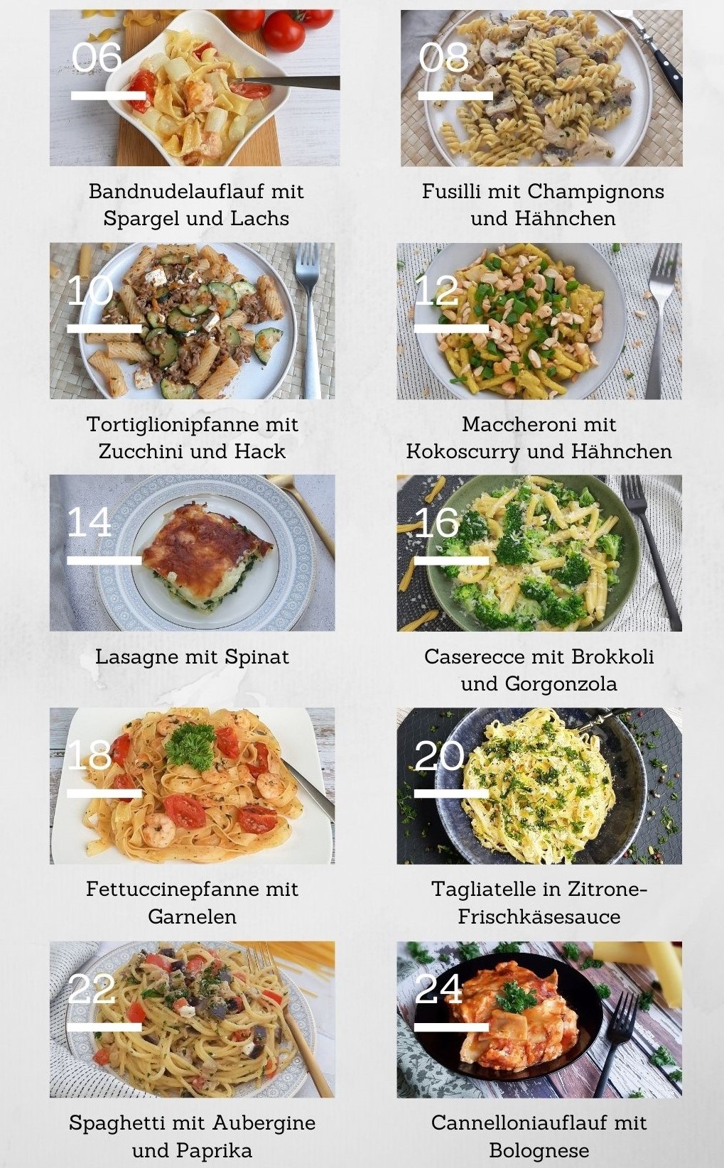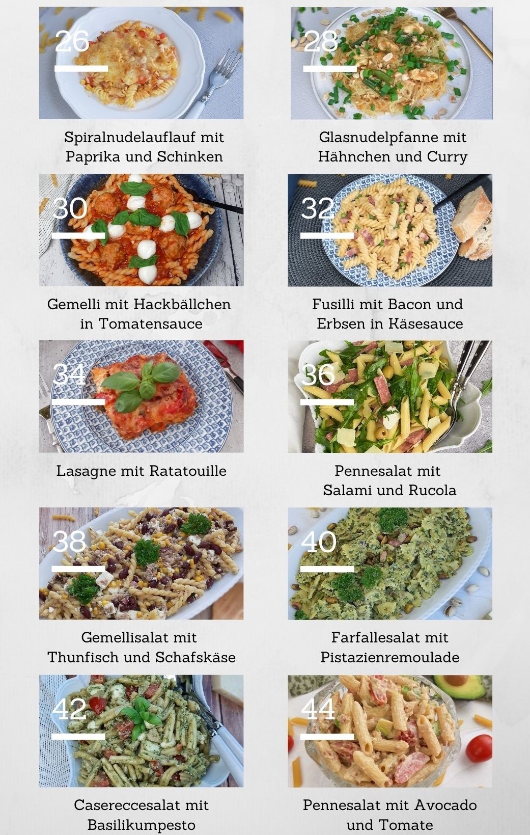 In diesem Rezeptheft findest du 20 einfache und leckere Nudelgerichte. Von Nudelsalat bis Nudelauflauf ist für jeden was dabei.