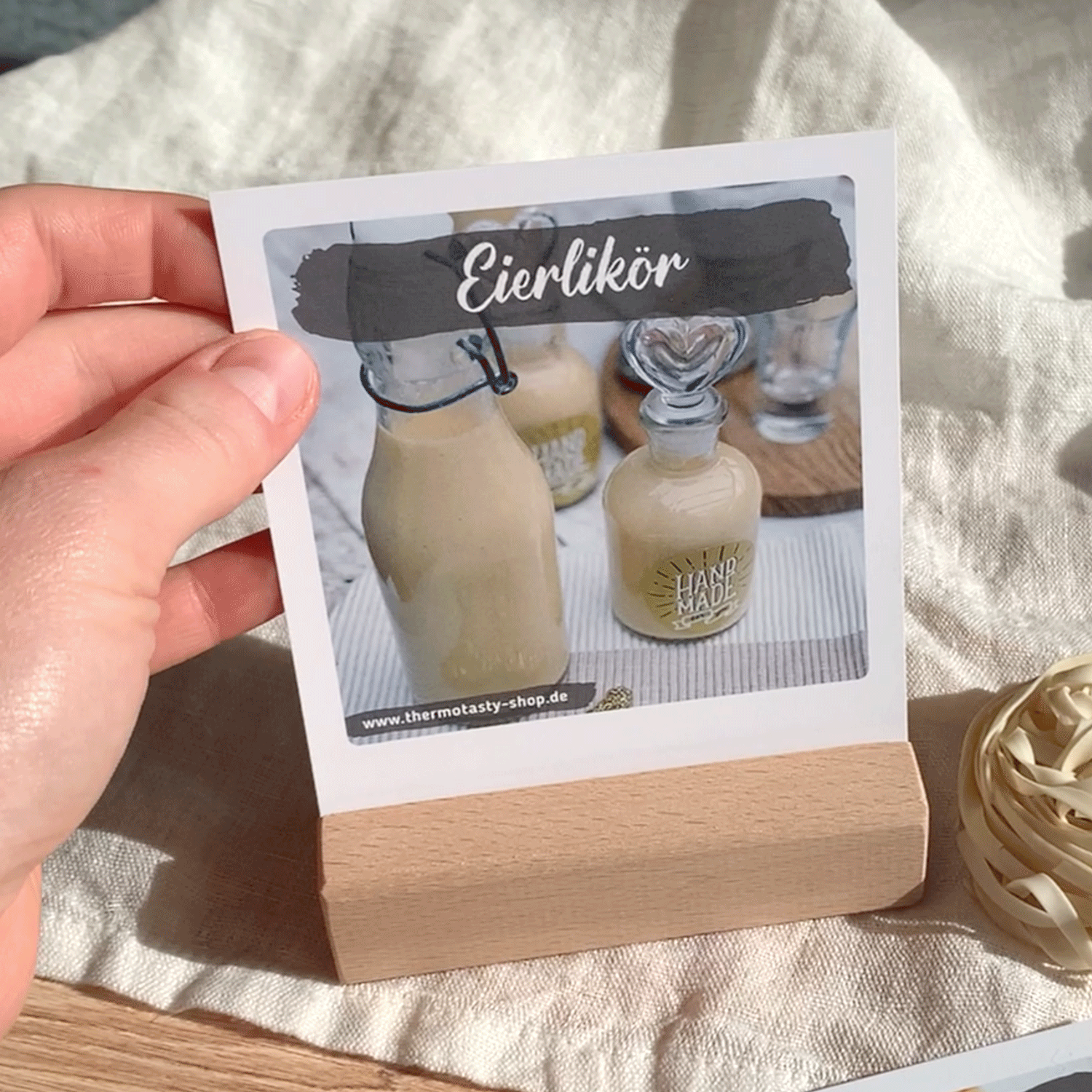 Praktische Rezeptkarten zum Aufstellen in der Küche. In diesem Set befinden sich einige Lieblingsrezepte, u. a. das Rezept für Flammkuchen, Chinakohlsalat, Lemon Curd. Auf den Vorderseiten findest du jeweils einen Serviervorschlag und auf der Rückseite befindet sich die vollständige Schritt-für-Schritt-Anleitung. Der dazu gelieferte Holzaufsteller hat eine schräge Kerbe, sodass die Rezeptkarten in einem schönen Blickwinkel aufgestellt werden können.Spezifikationen:10x Rezeptkarten im Polaroid-FormatInkl. passendem Holzständer Vorderseite: Serviervorschlag, Rückseite: Rezeptanleitung Größe Rezeptkarten ca. 12 x 10 cmGröße Holzaufsteller ca. 10 x 4 x 2,7 cm