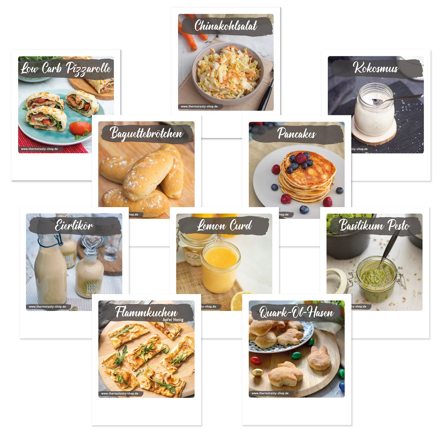 Praktische Rezeptkarten zum Aufstellen oder Aufhängen in der Küche. In diesem Set befinden sich 10 Lieblingsrezepte, u. a. das Rezept für Flammkuchen, Chinakohlsalat, Lemon Curd. Auf den Vorderseiten findest du jeweils einen Serviervorschlag und auf der Rückseite befindet sich die vollständige Schritt-für-Schritt-Anleitung. Spezifikationen:10x Rezeptkarten im Polaroid-FormatZum Aufstellen oder AufhängenVorderseite: Serviervorschlag, Rückseite: Rezeptanleitung Größe Rezeptkarten ca. 12 x 10 cm