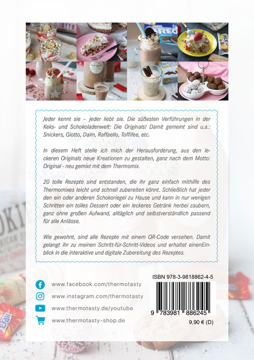 20 tolle Rezepte sind entstanden, die ihr ganz einfach mithilfe des Thermomixes leicht und schnell zubereiten könnt. Schließlich hat jeder den ein oder anderen Schokoriegel zu Hause und kann in nur wenigen Schritten ein tolles Dessert oder ein leckeres Getränk herbei zaubern, ganz ohne großen Aufwand, alltäglich und selbstverständlich passend für alle Anlässe.