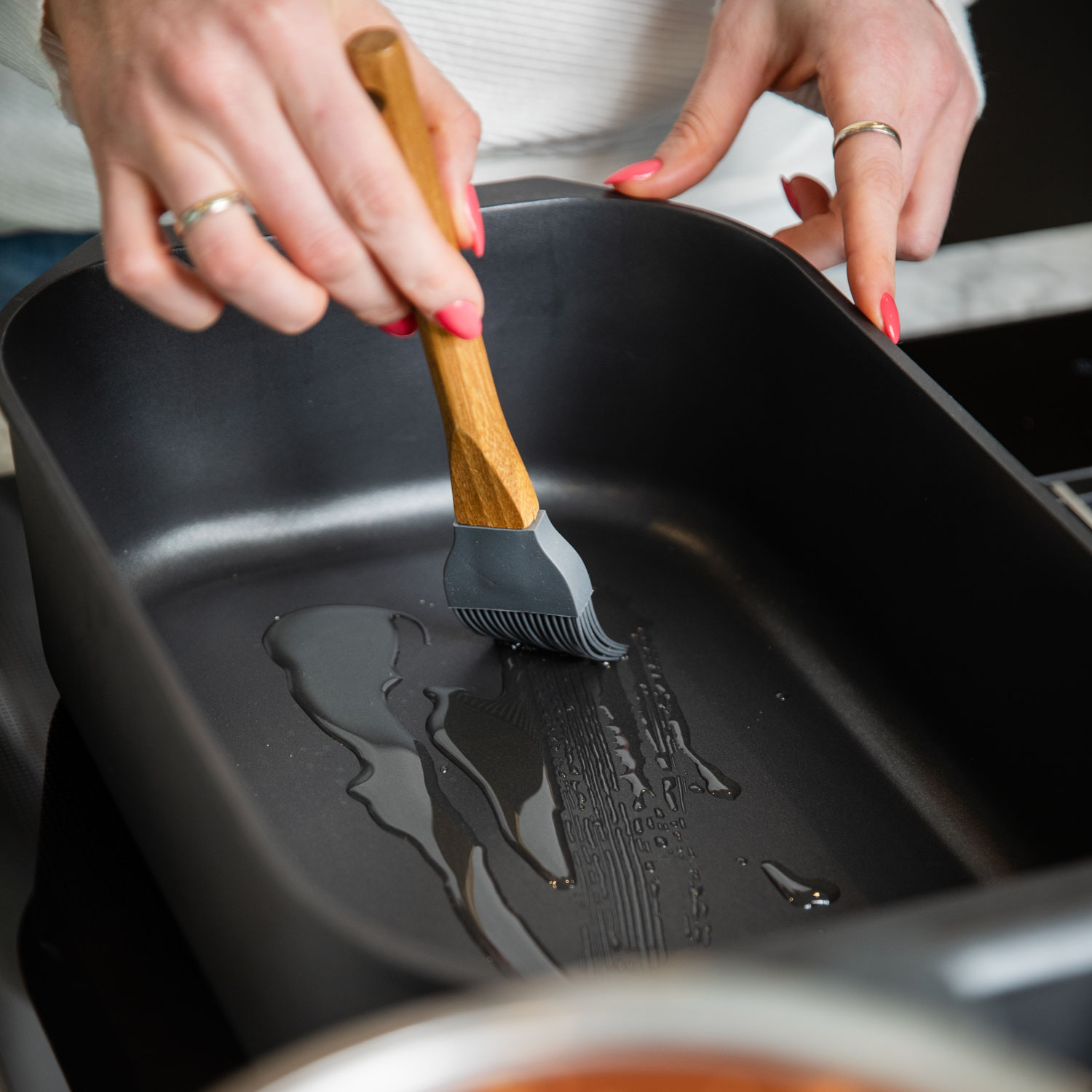 - Zum Bestreichen von Speisen, Pfannen, Waffel-Maker, etc.