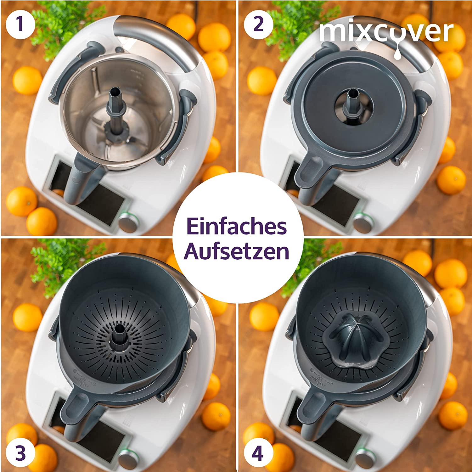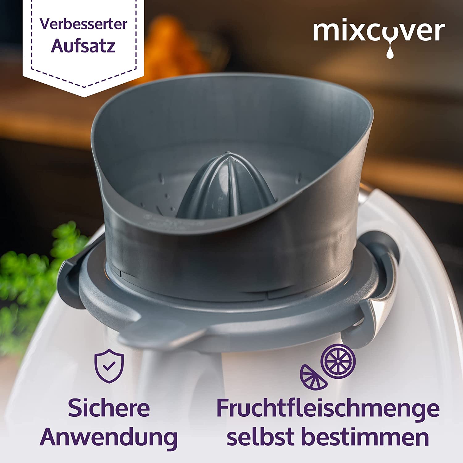 - Die neue Saftpresse wird auf den herkömmlichen Deckel des TM aufgesetzt und ist sicher für Ihre Hände und die TM-Waage.