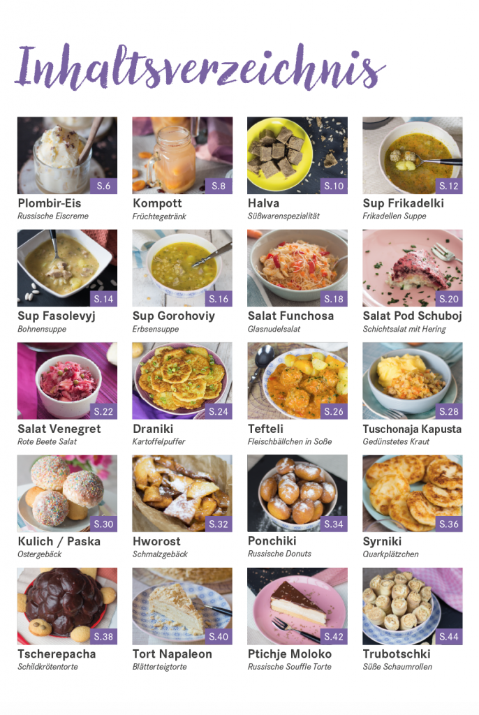 Es sind wieder 20 tolle, neue Rezepte aus der russischen Küche entstanden, die sowohl herzhaft als auch süß, aber vor allem lecker sind. Ob für den Alltag, Feste oder einen Abend mit Freunden, es ist für jeden Anlass etwas dabei.