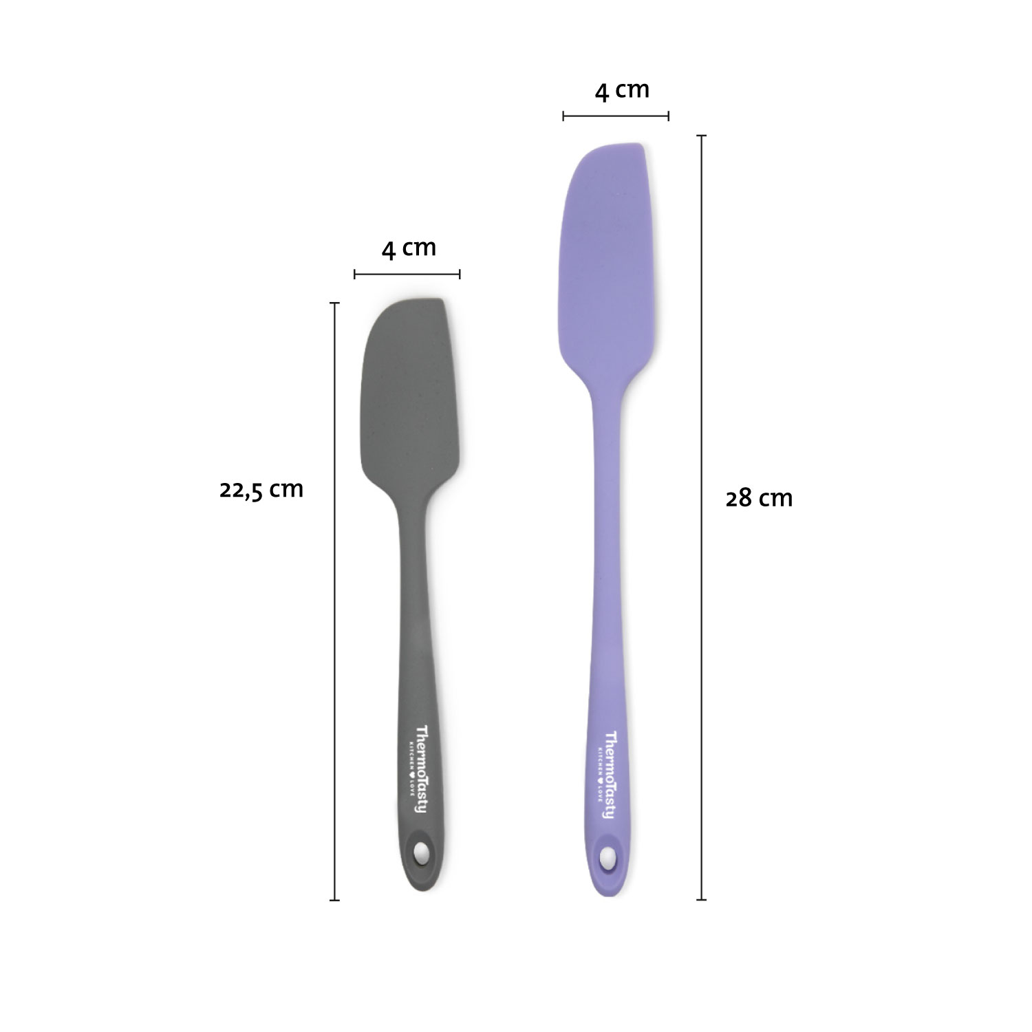 - Großer Teigspatel: 28 x 4 cm Kleiner Teigspatel: 22,5 x 4 cm